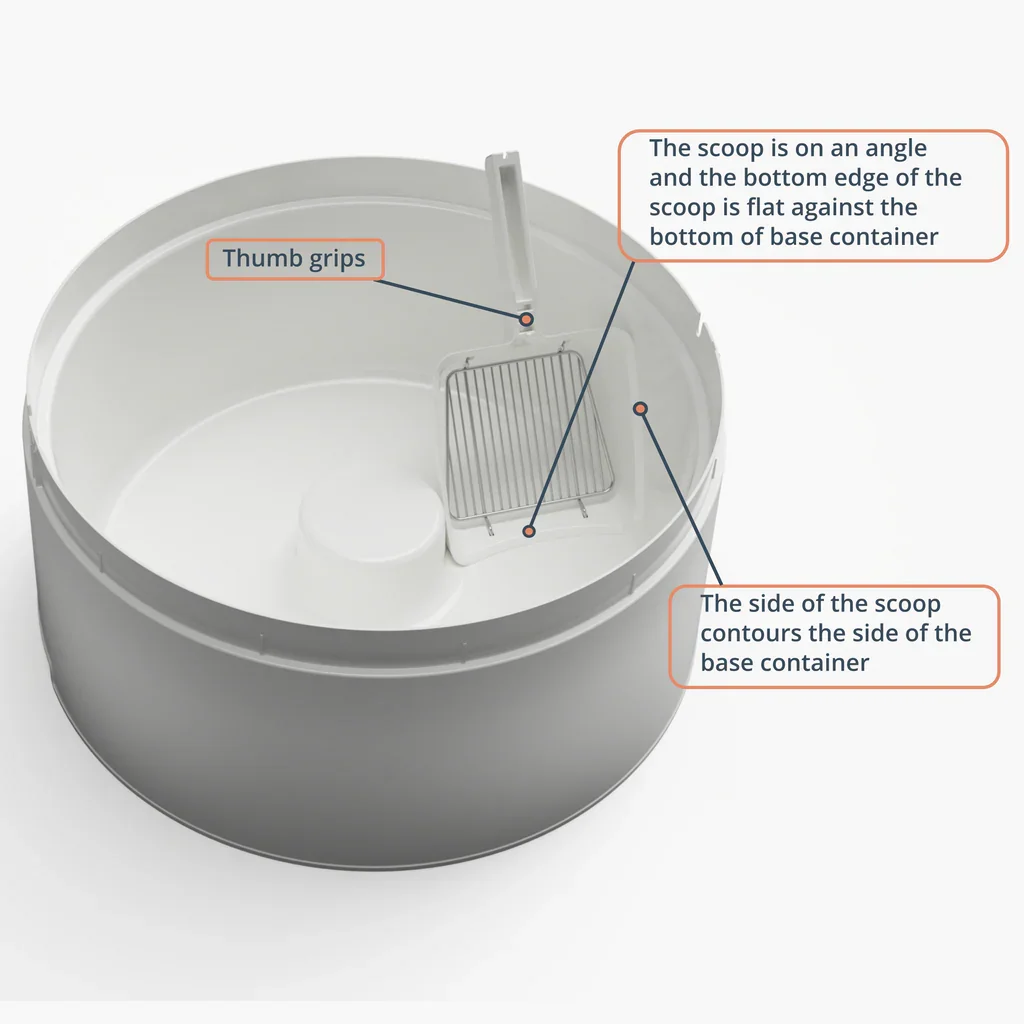 During complete litter changes, we recommend using the base of Boxscoop Curve as a wash basin.