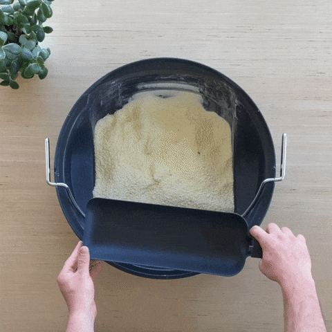 When positioned correctly, the handles will be parallel with the top edge of the container. If the scoop is positioned differently than the below image, the cover will not align.