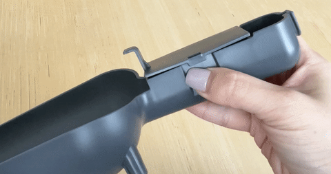 2. Align the cover so the covered part is directly a top the stored scoop. The slots on the cover will now slide over the scoop.