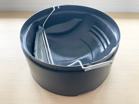 The toss container is also designed to store on the rim of Boxscoop: